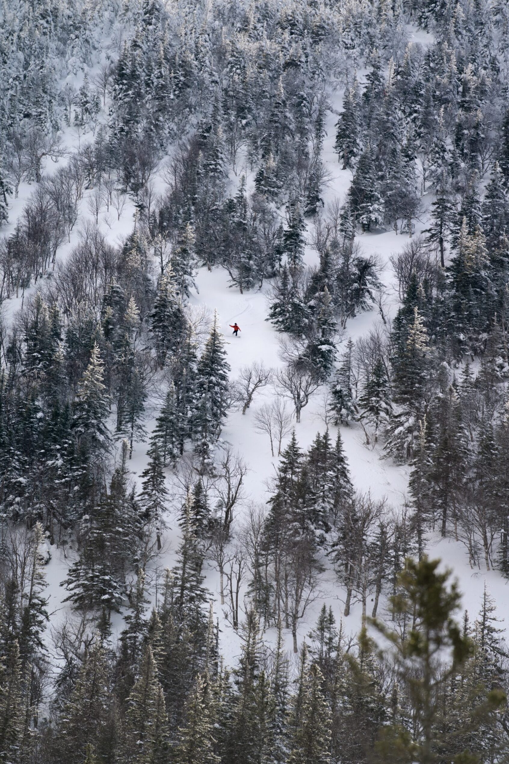 Ce secteur est incontestablement un domaine de ski hors-piste extraordinaire, offrant une multitude d’itinéraires de descente sur de nombreux versants qui satisfont autant les novices que les experts en hors-piste. Le terrain est constitué de forêts matures qui sont parfois sillonnées de coulées naturelles ou dont l’espacement entre les arbres est souvent optimal pour permettre une descente aisée et la précipitation de neige transportée par le vent. Ce type de terrain naturel propice au ski de poudreuse n’est probablement nulle part aussi développé dans l’est de l’Amérique.