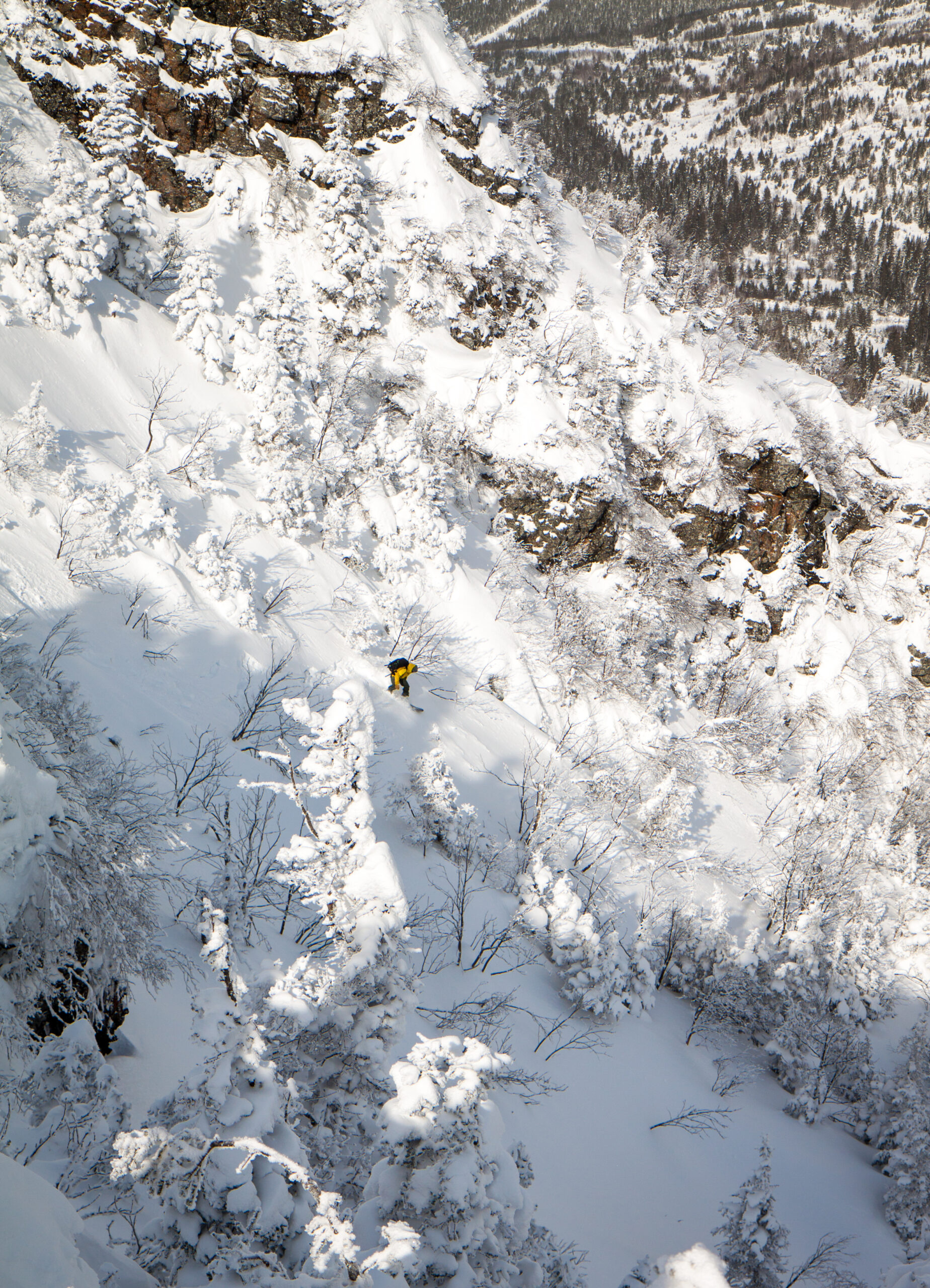 La diversité de ce domaine est telle qu’un voyage type de 4 jours peut procurer des objectifs différents à chaque journée sans que le client repasse dans ses traces. La présence d’arbres sur la plupart des pentes abruptes que nous avons fréquentées diminue le risque d’avalanches et garantit une très bonne qualité de neige.